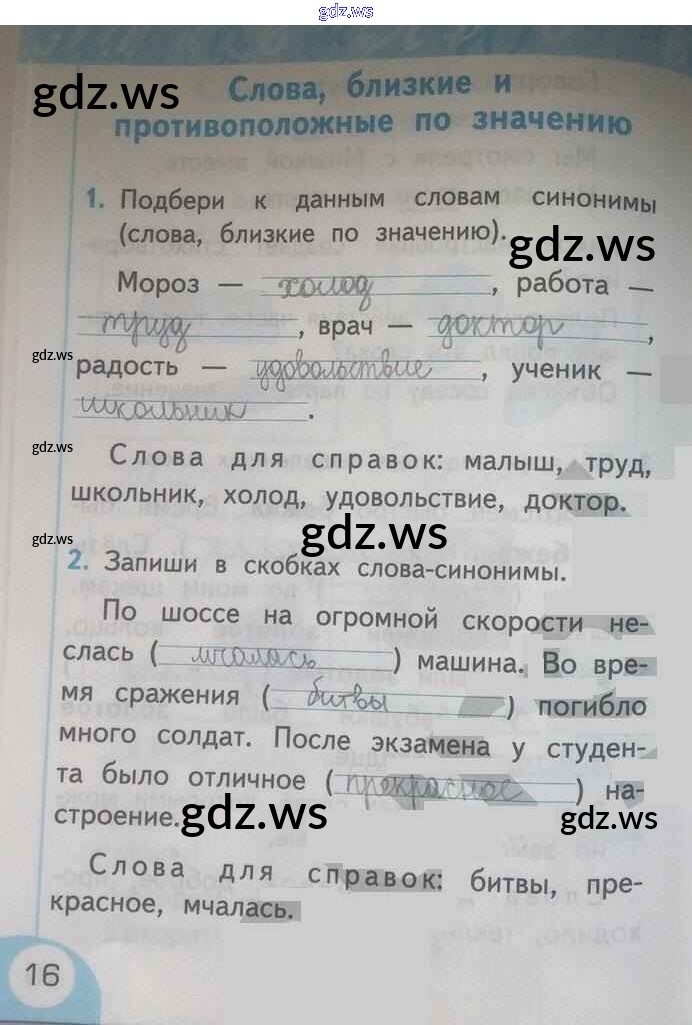 Готовый ответ Страницы - Русскому языку 1 класс Тихомирова Рабочая тетрадь УМК ФГОС