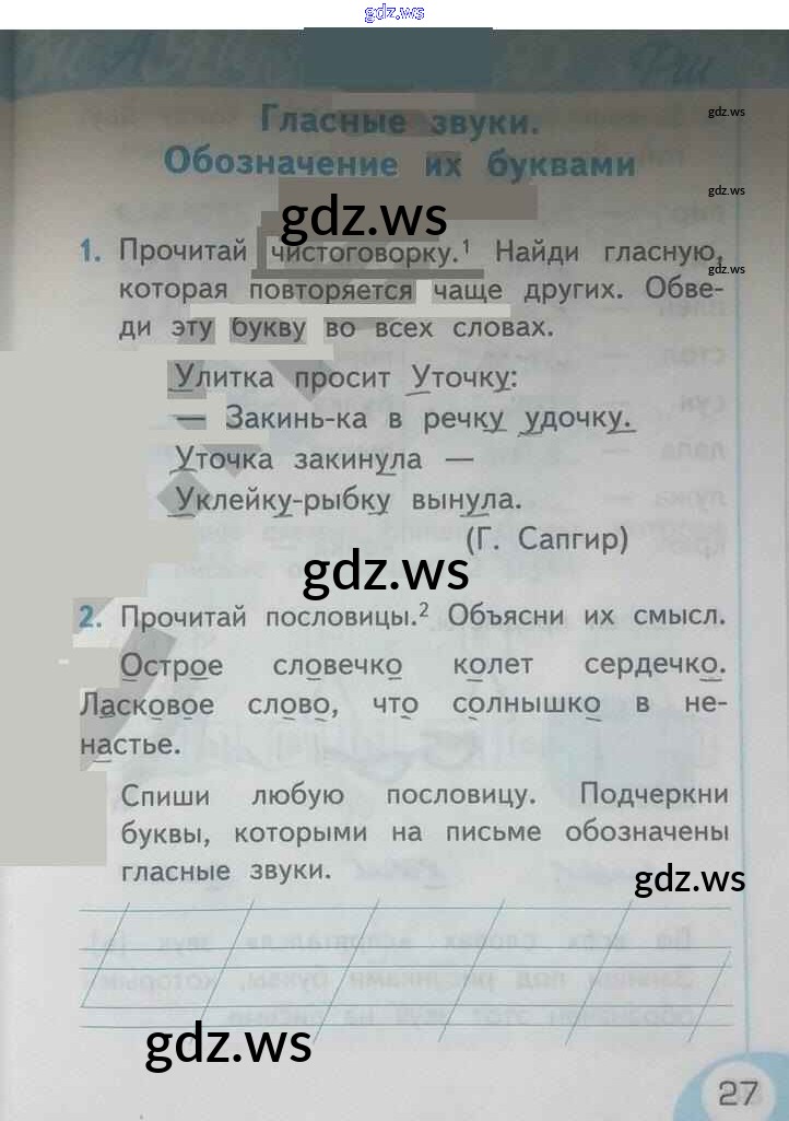 Готовый ответ Страницы - Русскому языку 1 класс Тихомирова Рабочая тетрадь УМК ФГОС