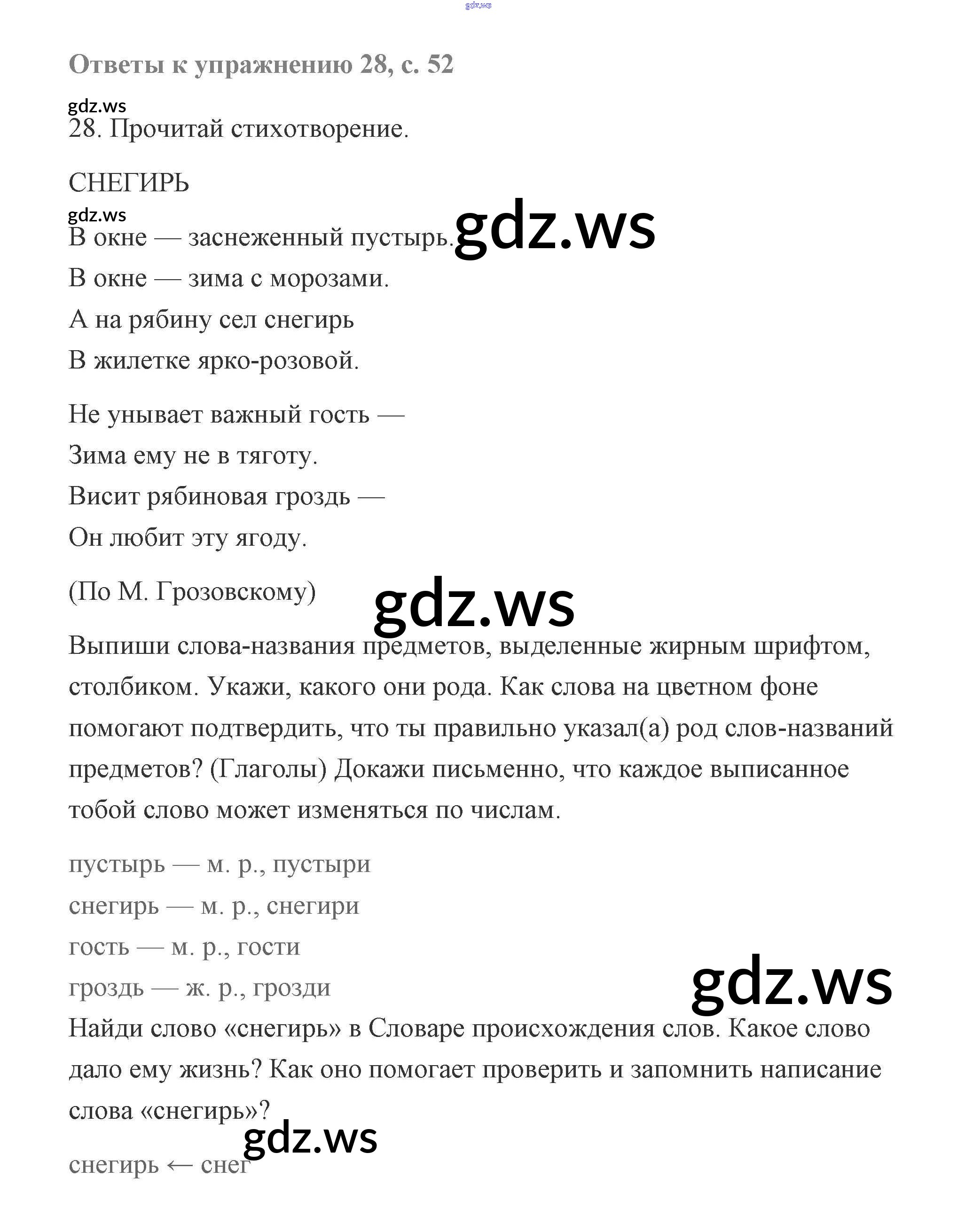 Готовый и полный ответ к Часть 1 (Упражнения) - Русскому языку 2 класс Чуракова Учебник Перспективная начальная школа