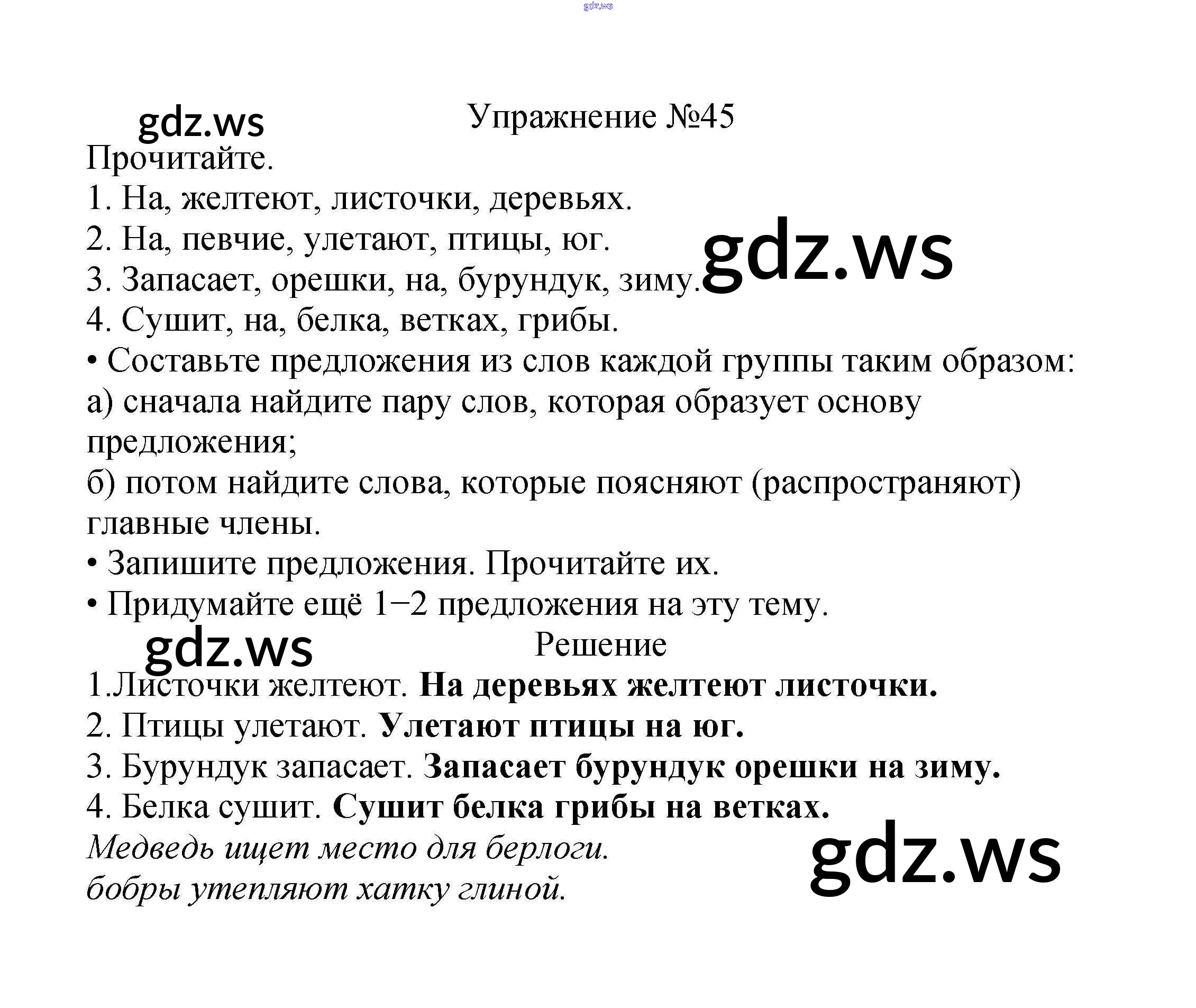 Готовый и полный ответ к Часть 1. Упражнения - Русскому языку 2 класс Канакина Учебник Школа России ФГОС