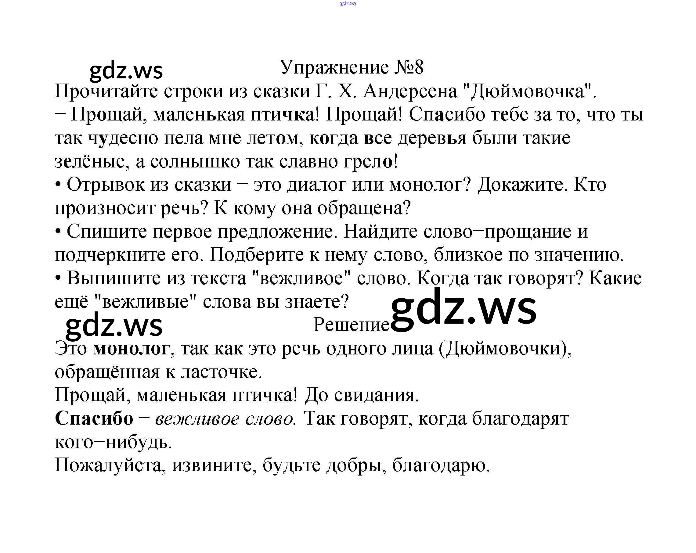 Готовый и полный ответ к Часть 1. Упражнения - Русскому языку 2 класс Канакина Учебник Школа России ФГОС