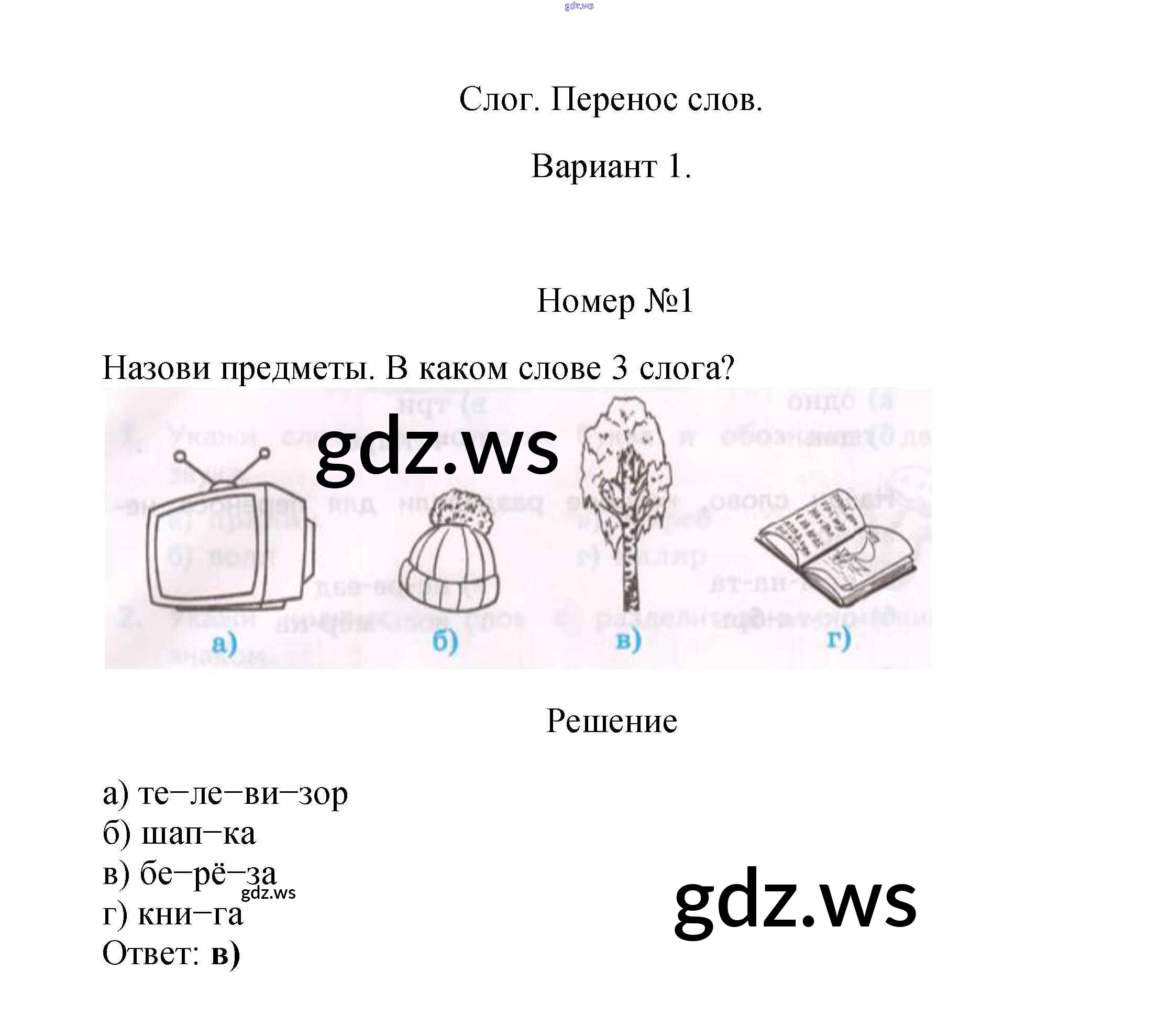 Готовый и полный ответ к Вариант 1 Тест 7. Слог. Перенос слов - Русскому языку 2 класс Тихомирова Тесты УМК ФГОС