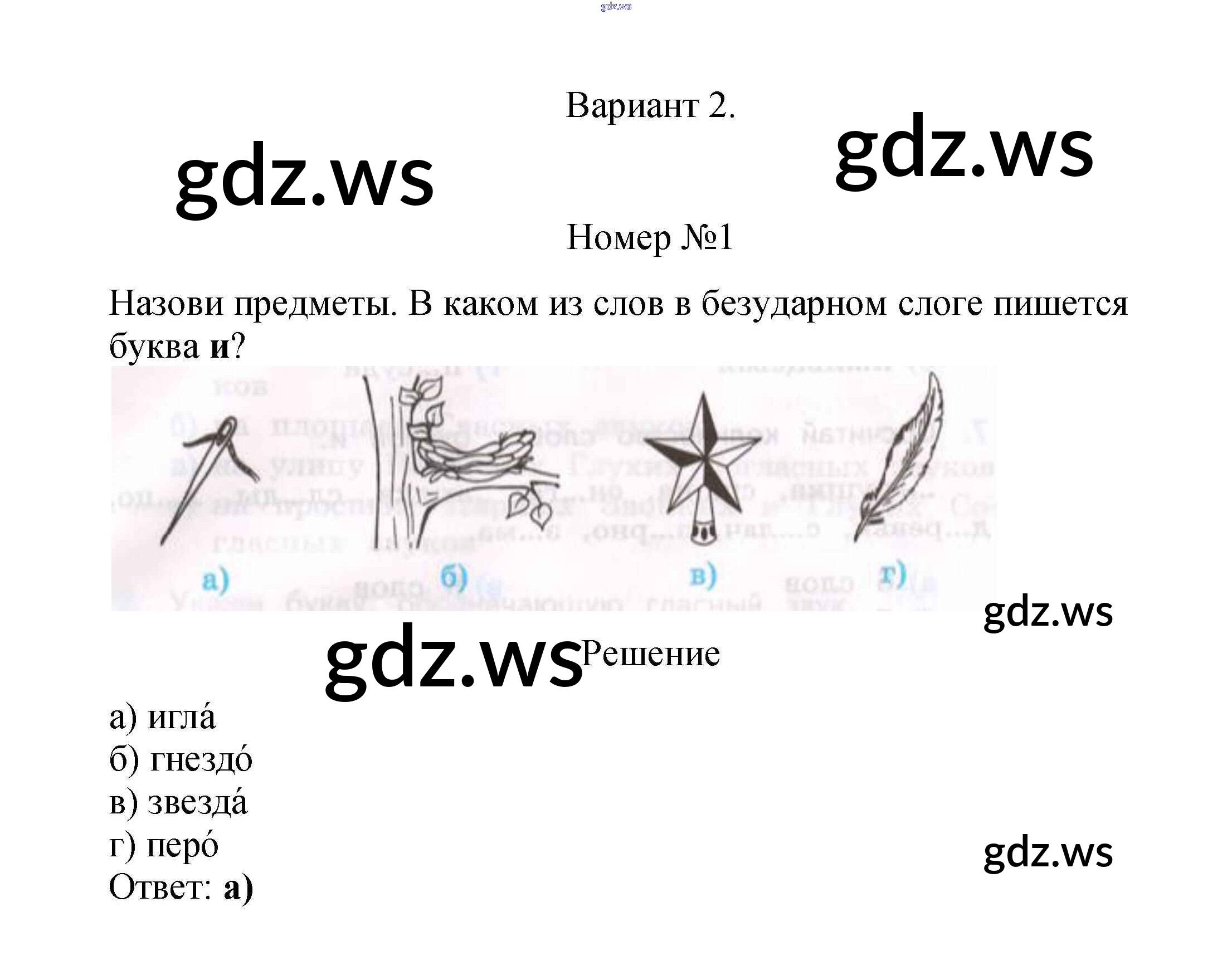 Готовый и полный ответ к Вариант 2 Тест 9. Безударные гласные звуки. Их обозначение на письме - Русскому языку 2 класс Тихомирова Тесты УМК ФГОС