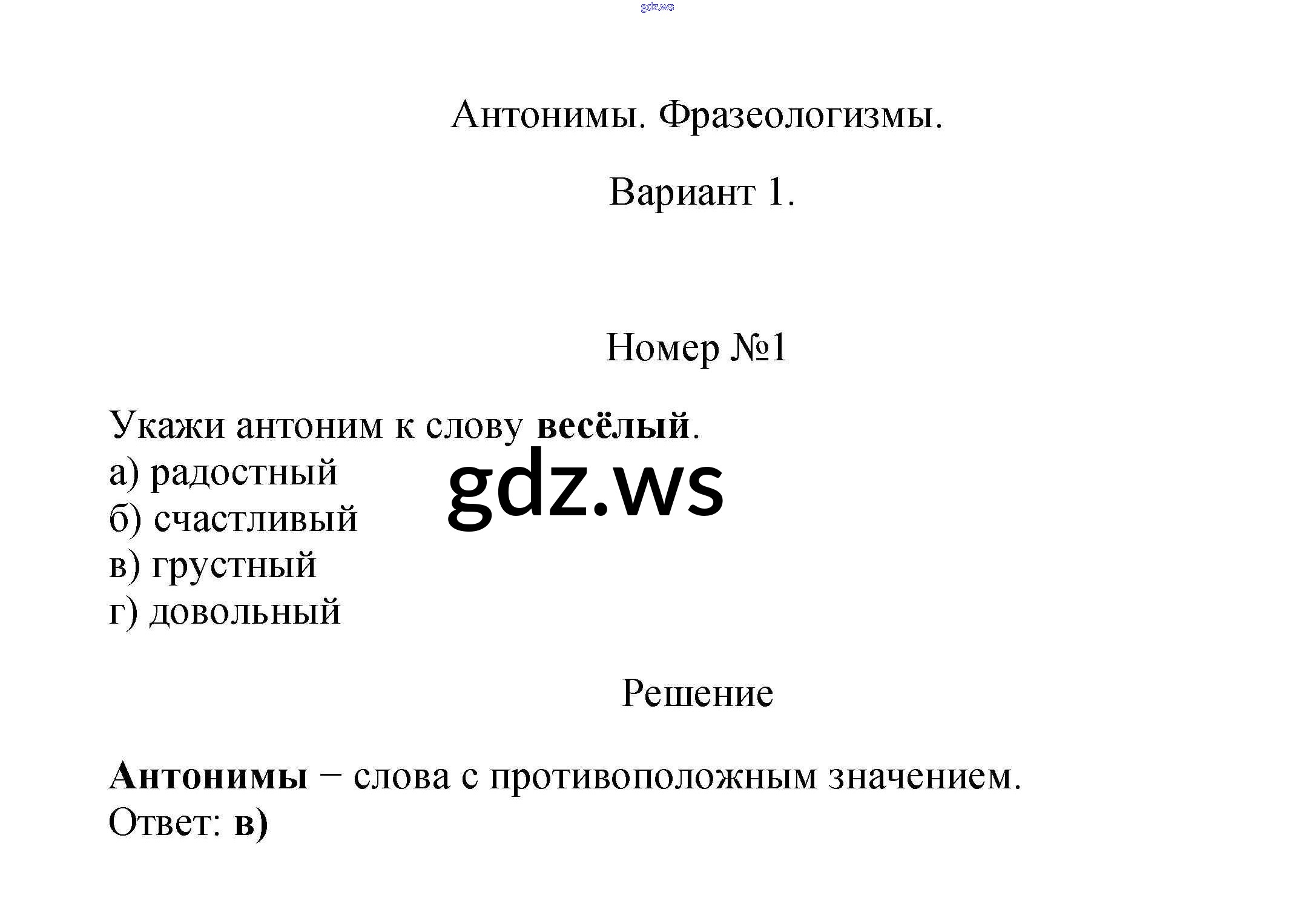 Готовый ответ Вариант 1 Тест 17. Слова противоположные по значению (антонимы). Устойчивые сочетания слов (фразеологизимы) - Русскому языку 2 класс Тихомирова Тесты УМК ФГОС