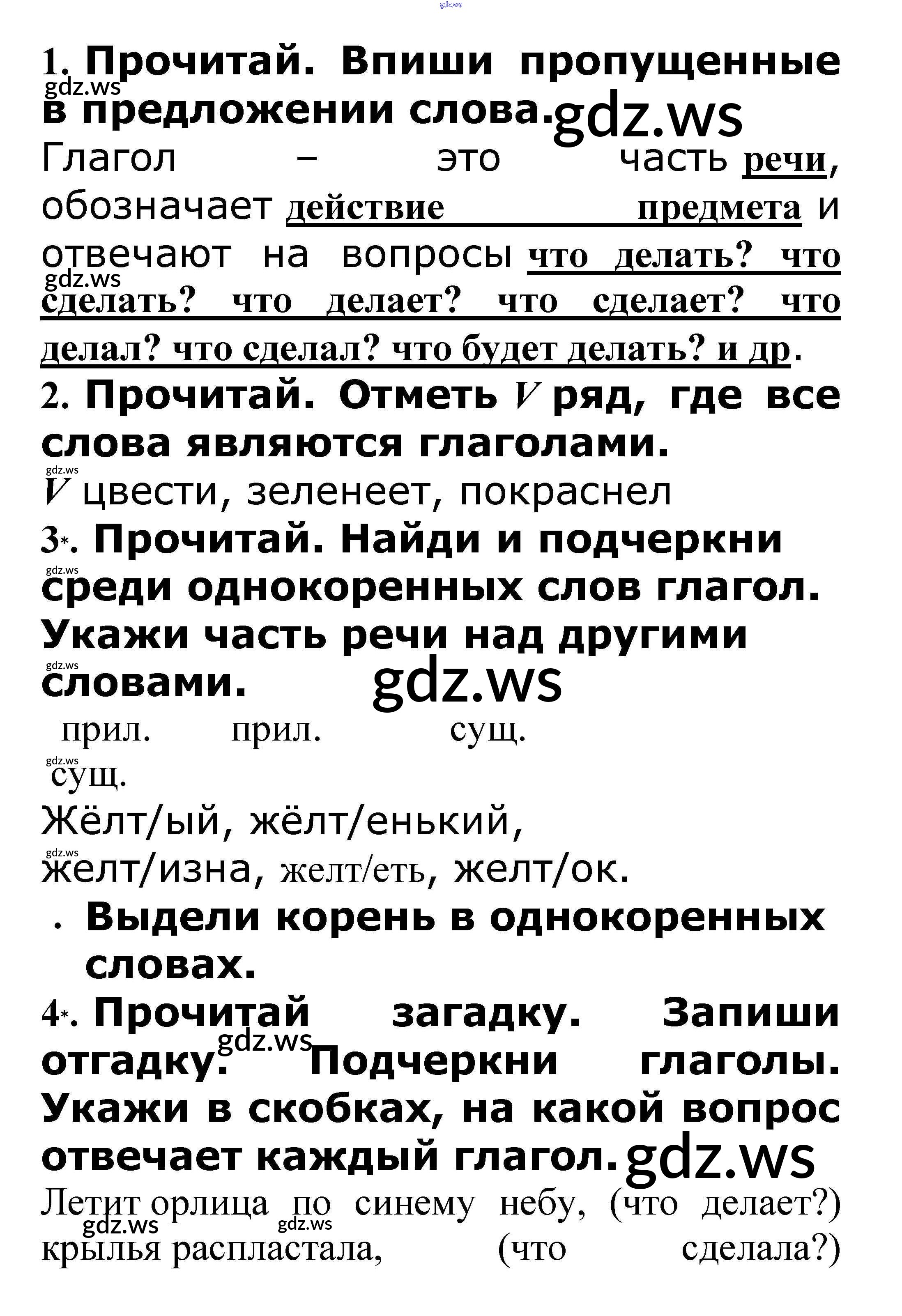 Готовый ответ Глагол - Русскому языку 3 класс Канакина Проверочные работы Школа России ФГОС