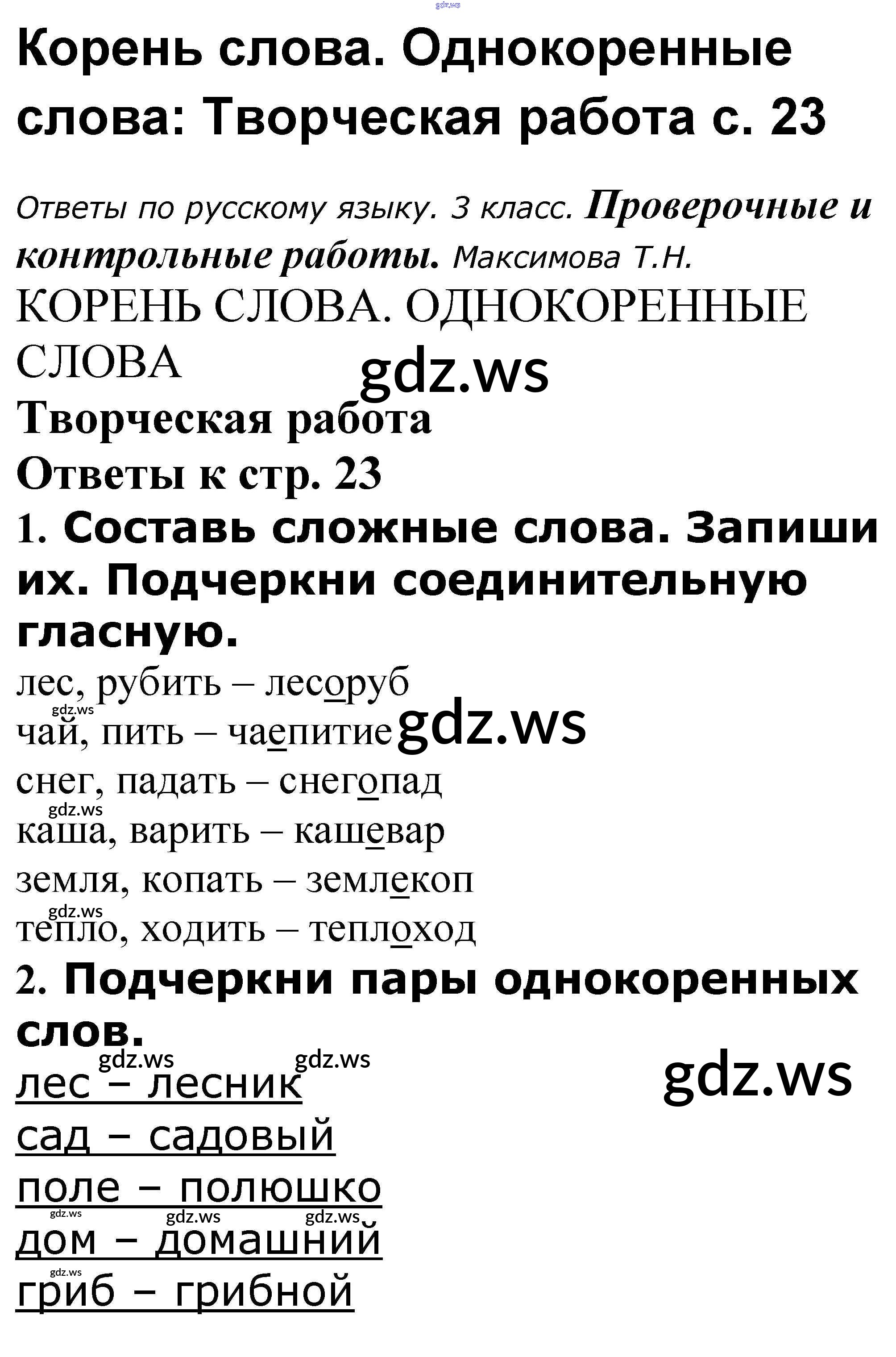 Готовый и полный ответ к Корень слова. Однокоренные слова - Русскому языку 3 класс Максимова Проверочные и контрольные работы ФГОС