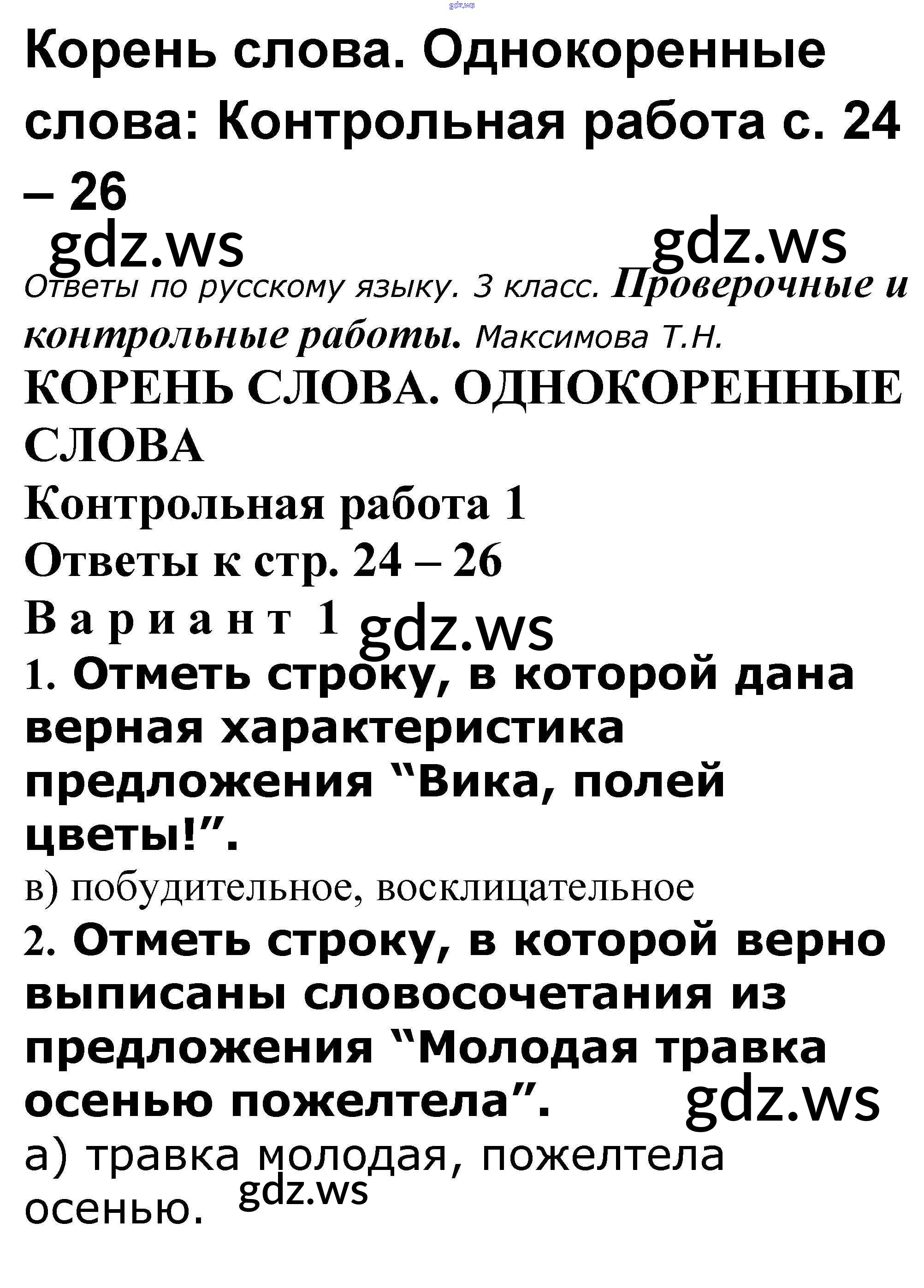 Готовый и полный ответ к Корень слова. Однокоренные слова - Русскому языку 3 класс Максимова Проверочные и контрольные работы ФГОС