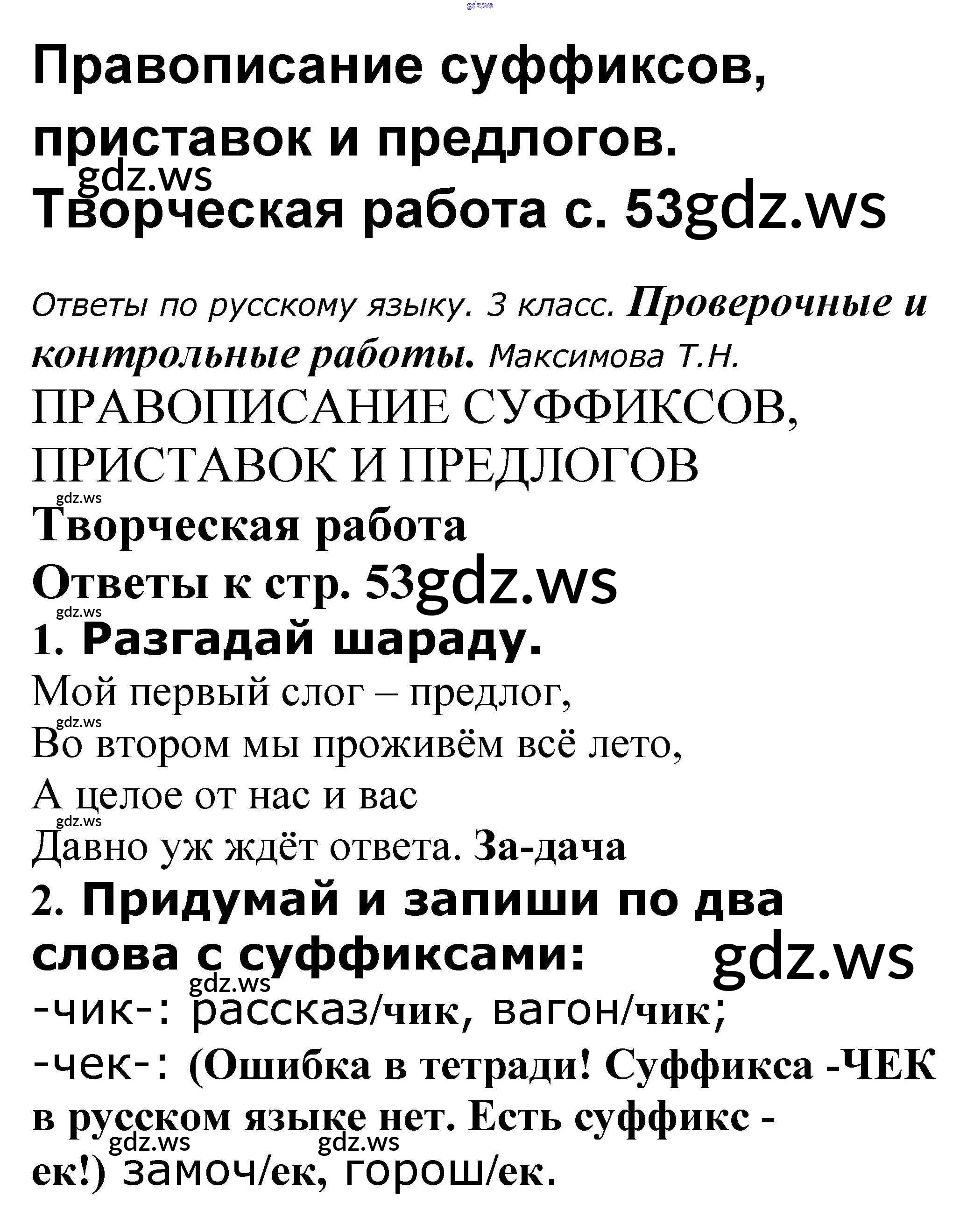 Готовый и полный ответ к Правописание суффиксов, приставок и предлогов - Русскому языку 3 класс Максимова Проверочные и контрольные работы ФГОС