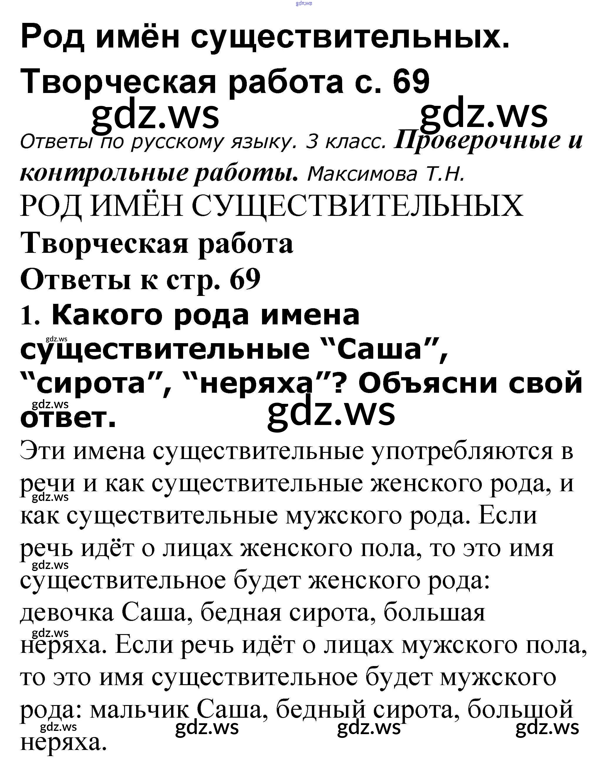Готовый ответ Род имён существительных - Русскому языку 3 класс Максимова Проверочные и контрольные работы ФГОС