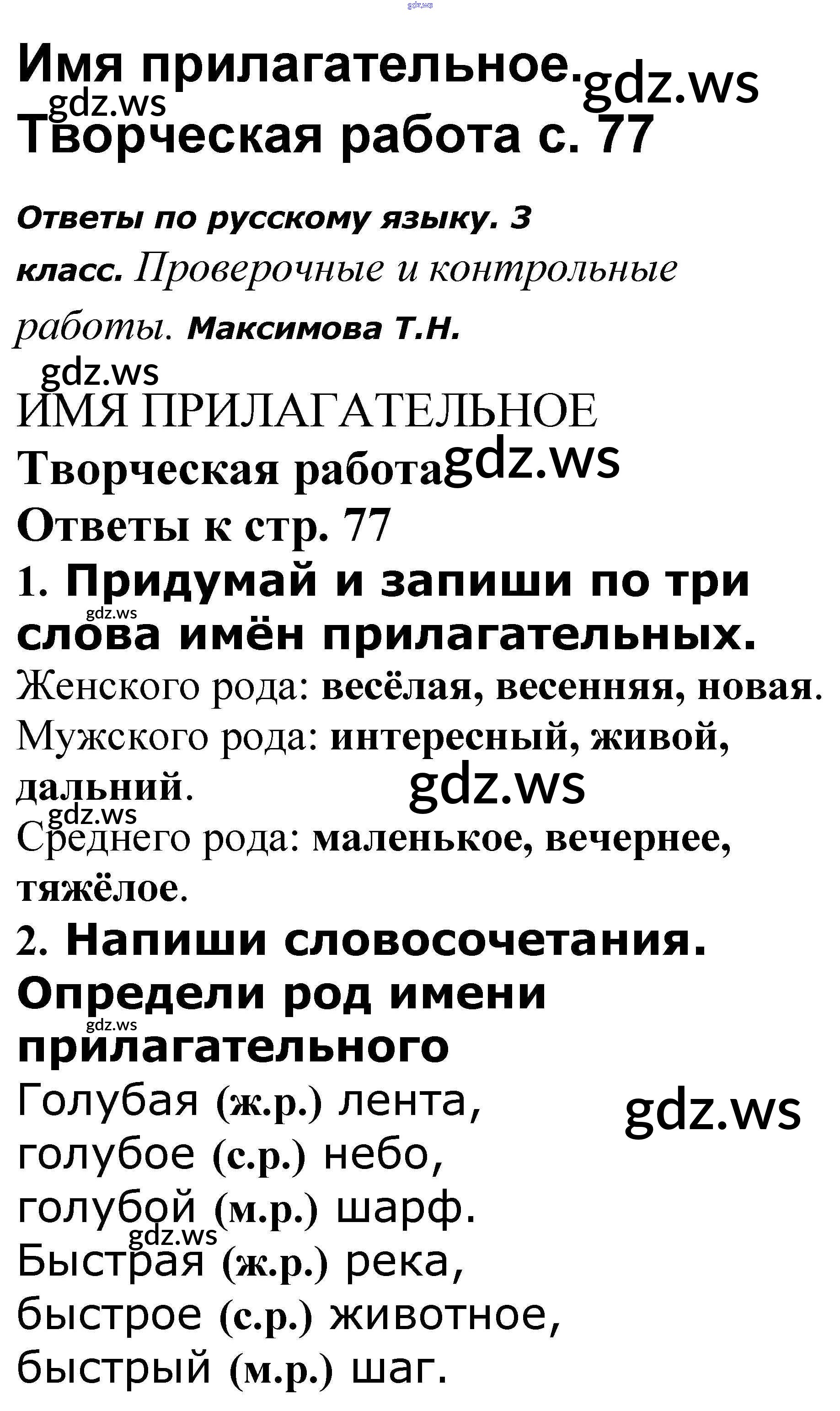 Готовый ответ Имя прилагательное - Русскому языку 3 класс Максимова Проверочные и контрольные работы ФГОС