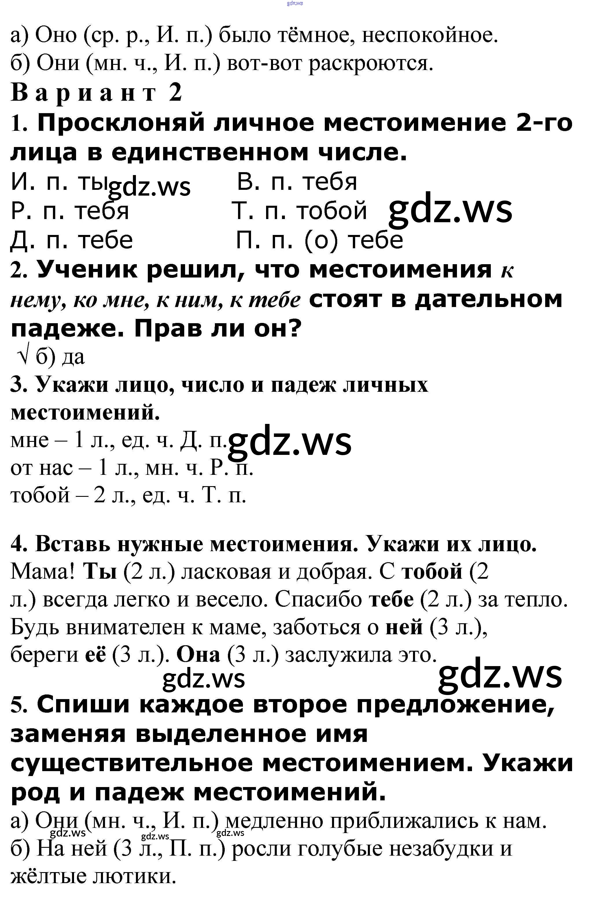 Готовый и полный ответ к Личные местоимения - Русскому языку 4 класс Максимова Проверочные и контрольные работы ФГОС