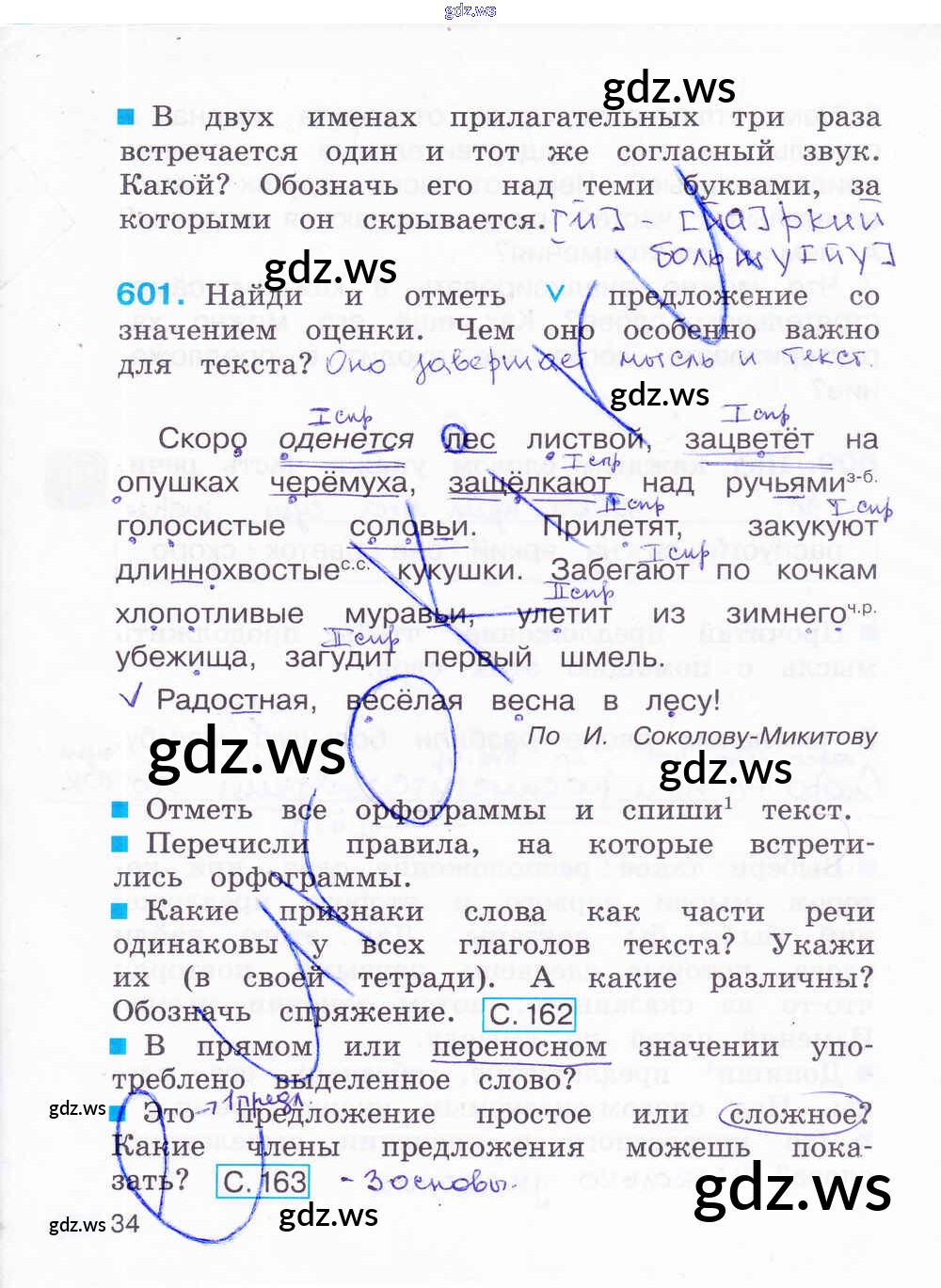 Готовый и полный ответ к Часть 3. Страницы - Русскому языку 4 класс Соловейчик Рабочая тетрадь Гармония ФГОС