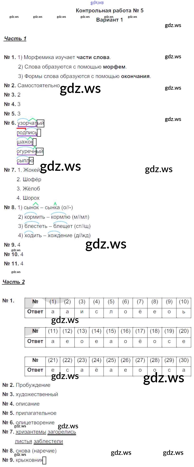 Готовый и полный ответ к КР-5. Варианты Контрольные работы - Русскому языку 5 класс Гулеватая Рабочая тетрадь ФГОС
