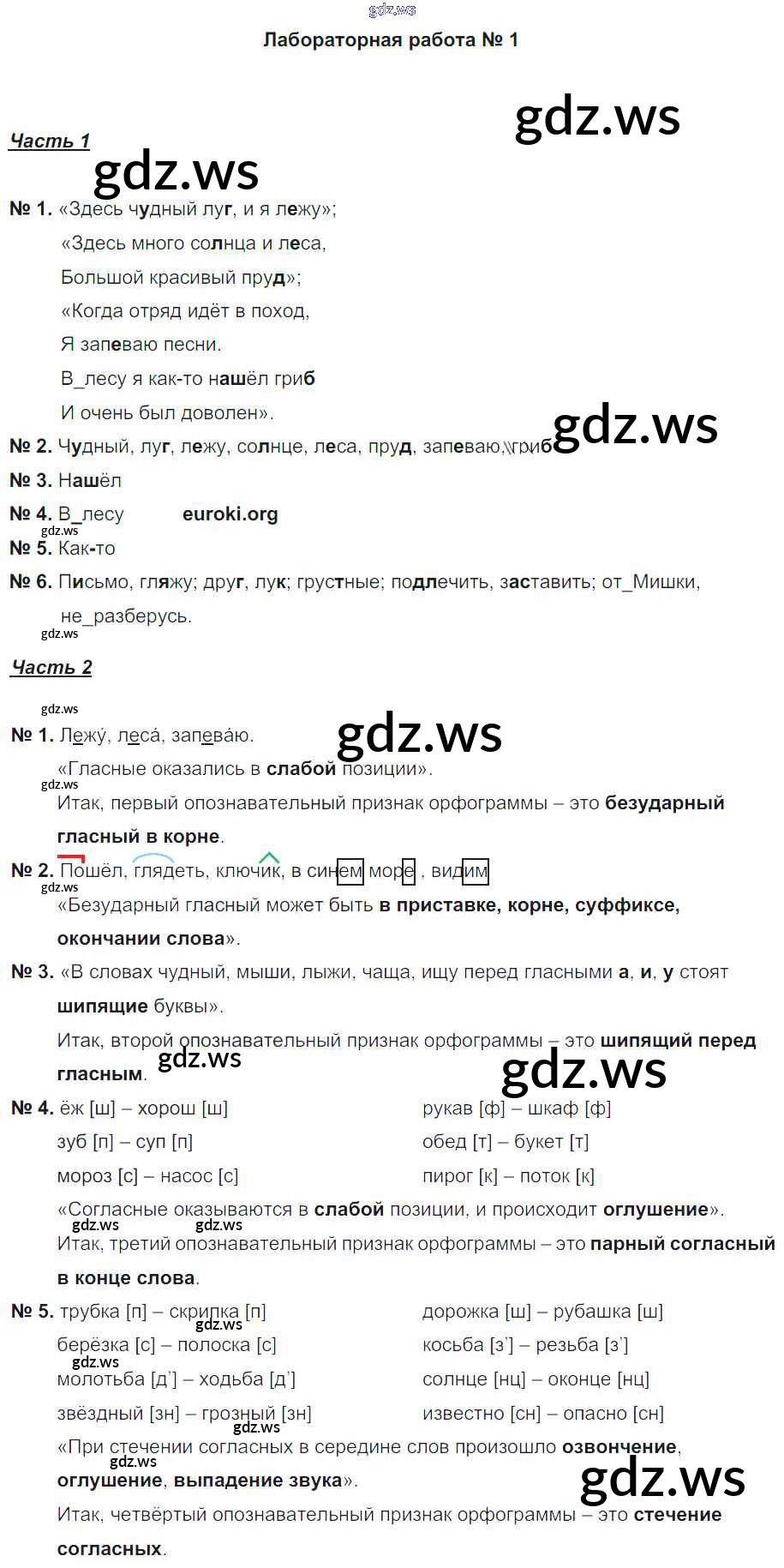 Готовый и полный ответ к 1 Лабораторные работы - Русскому языку 5 класс Гулеватая Рабочая тетрадь ФГОС