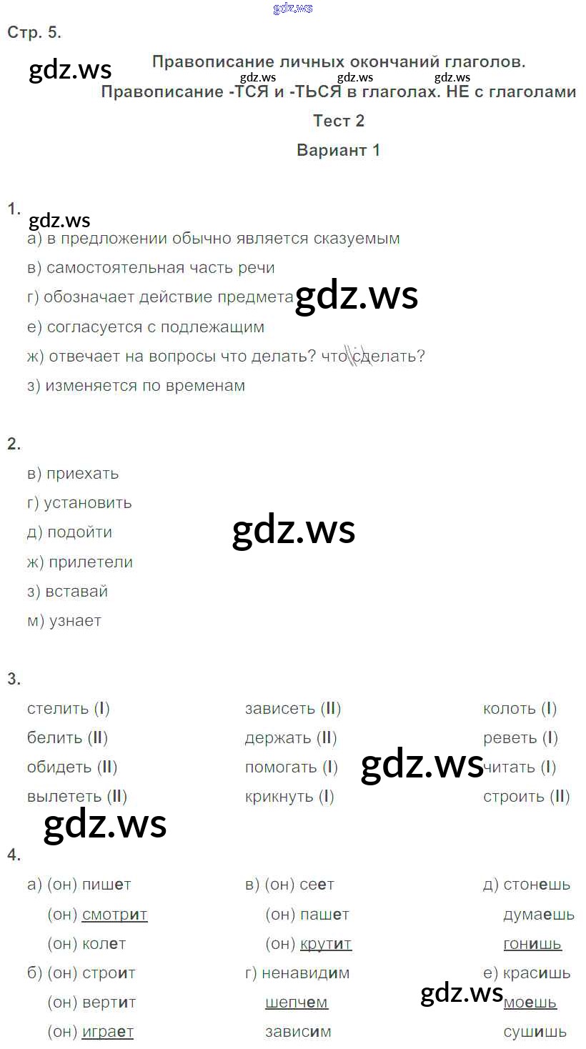 Готовый ответ Часть 1. Страницы - Русскому языку 5 класс Книгина Тесты ФГОС