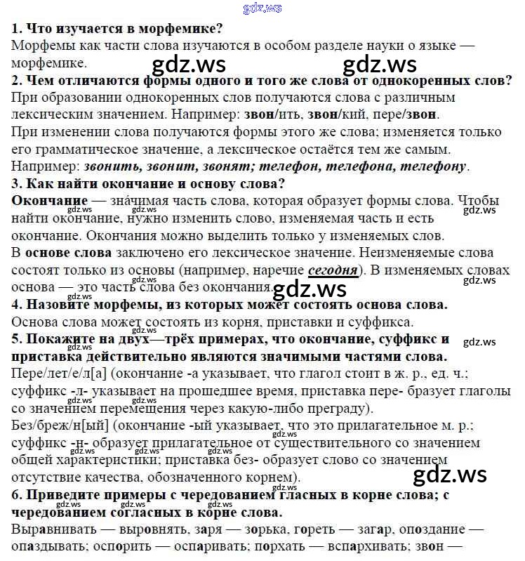 Готовый и полный ответ к Повторение. Контрольные вопросы и задания Часть 2. Упражнения - Русскому языку 5 класс Баранов Учебник ФГОС