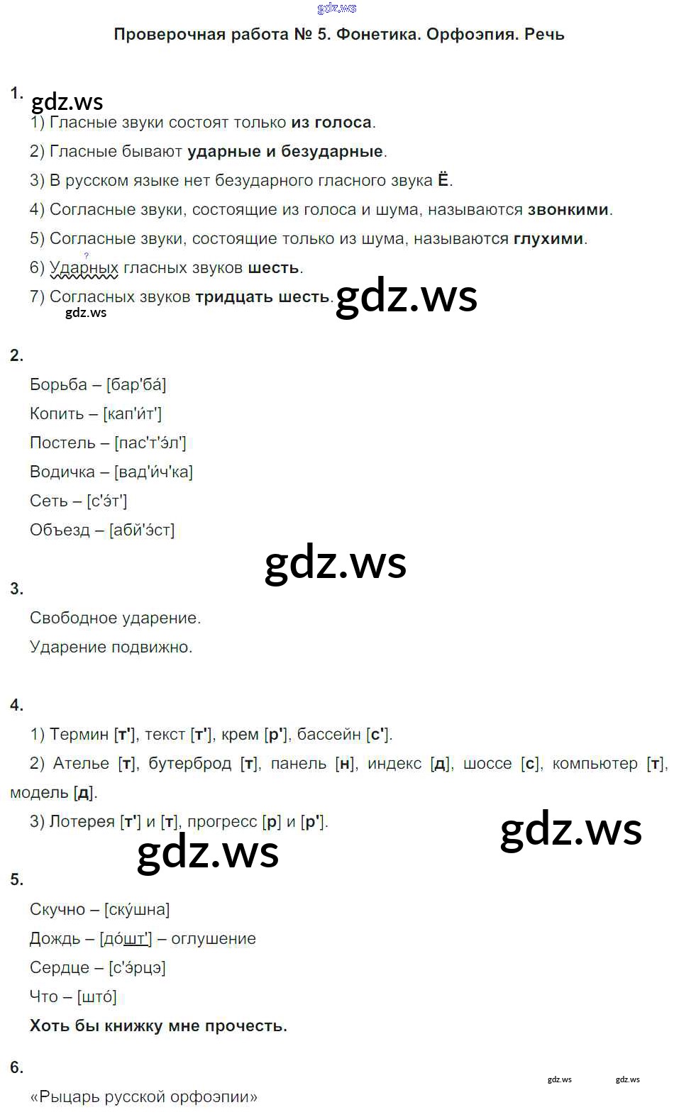 Готовый и полный ответ к Проверочные работы - Русскому языку 5 класс Львов Тетрадь для оценки качества знаний ФГОС