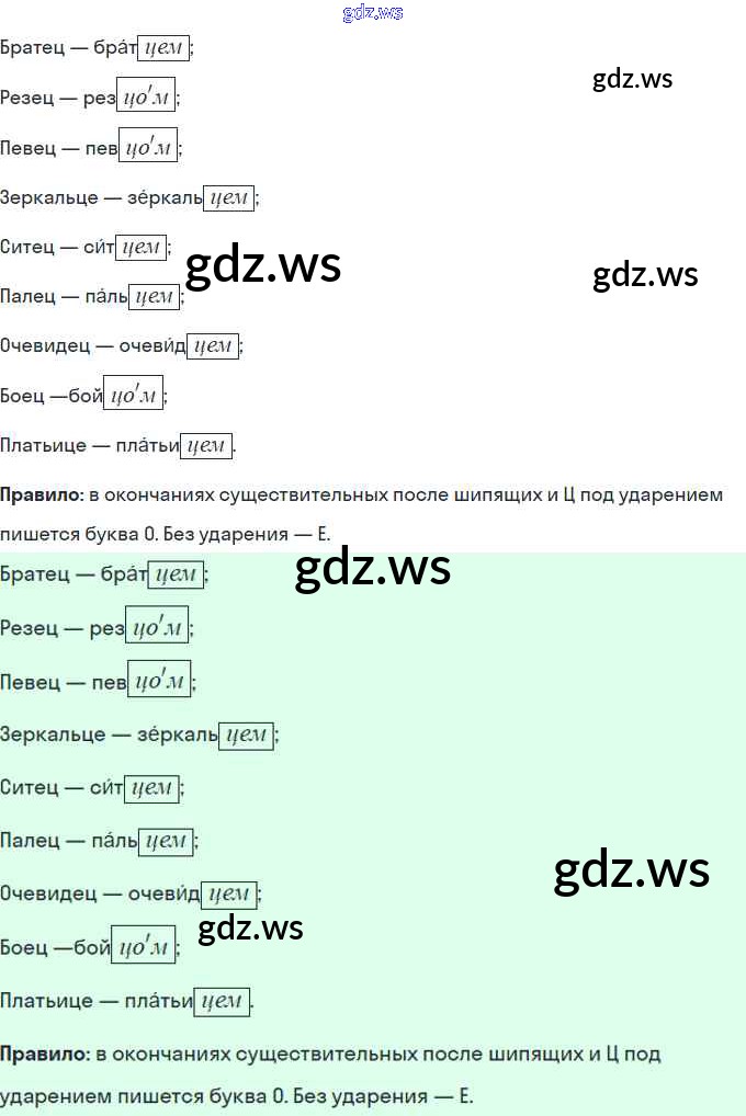 Готовый и полный ответ к §41. Буквы о, ё после шипящих и ц в окончаниях имён существительных Часть 1 - Русскому языку 5 класс Рыбченкова Рабочая тетрадь ФГОС