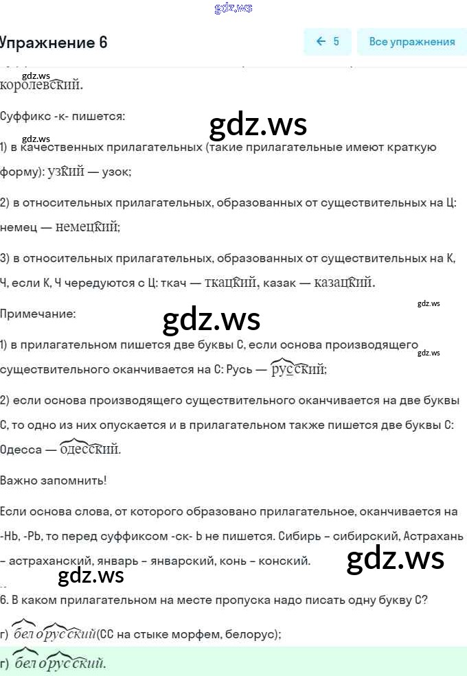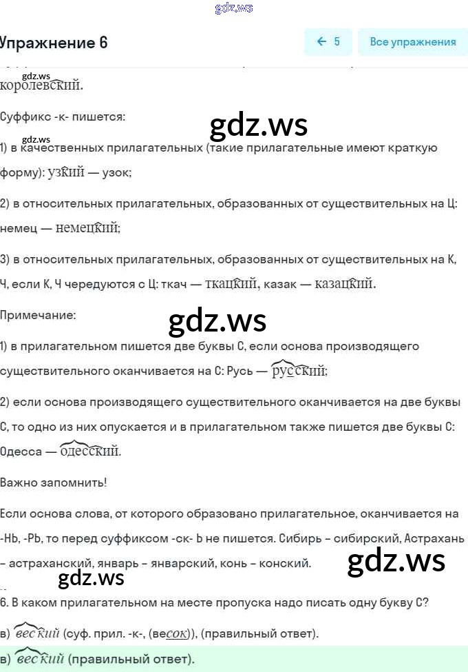 часть 2 / правописание прилагательных с суффиксами -ск- и -к- / 6