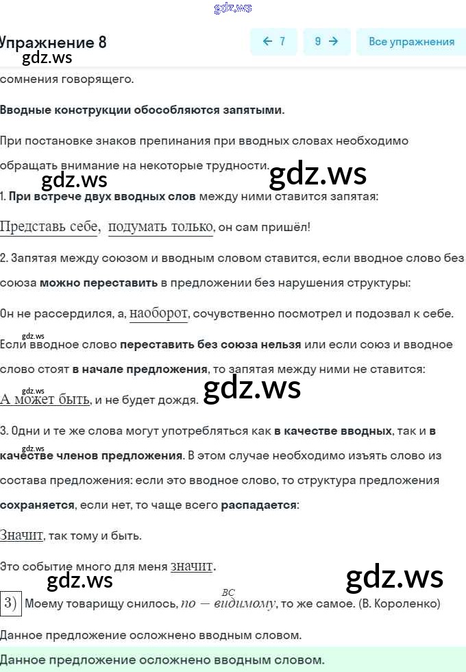 Номера упражнений: