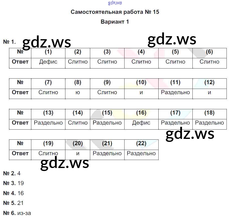 Готовый и полный ответ к СР-15. Варианты Самостоятельные работы - Русскому языку 7 класс Александров Рабочая тетрадь ФГОС