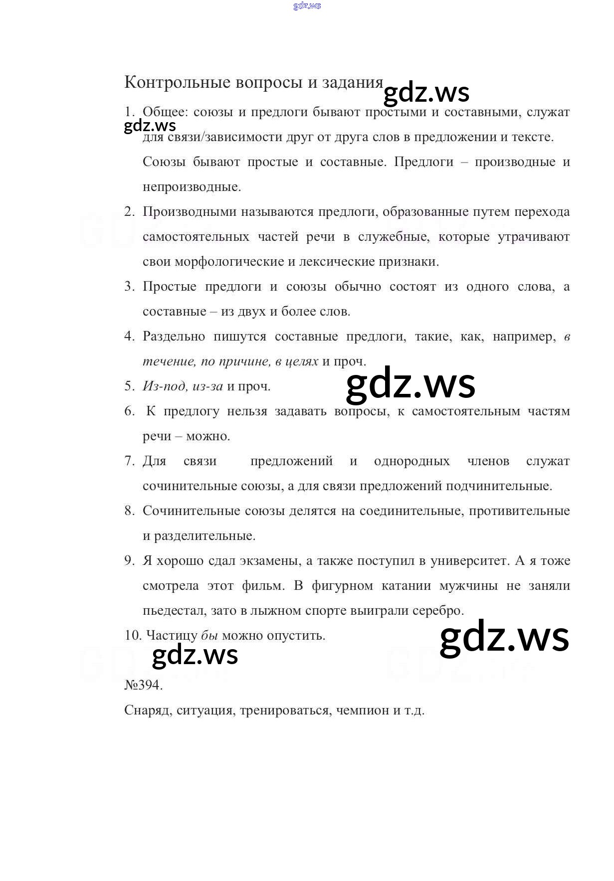 Готовый ответ Контрольные вопросы и упражнения. Страницы - Русскому языку 7 класс Баранов Учебник УМК ФГОС