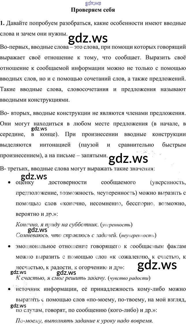 Готовый ответ Проверяем себя Часть 2 - Русскому языку 8 класс Быстрова Учебник Инновационная школа ФГОС