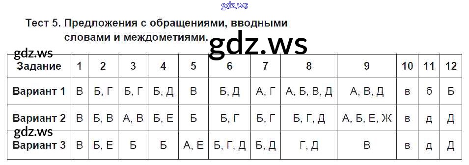 Готовый ответ Тесты - Русскому языку 8 класс Малюшкин Тестовые задания ФГОС