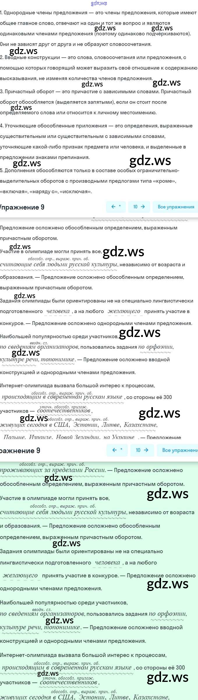 Номера упражнений: