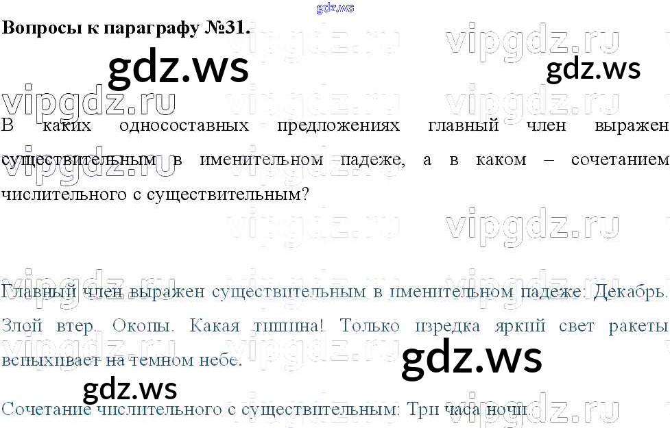 Готовый и полный ответ к Вопросы к параграфам - Русскому языку 8 класс Тростенцова Учебник ФГОС
