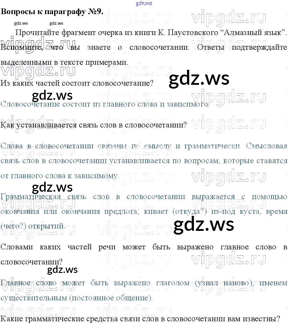 Готовый и полный ответ к Вопросы к параграфам - Русскому языку 8 класс Тростенцова Учебник ФГОС
