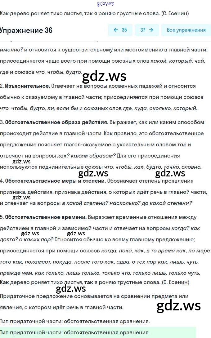 контрольная работа / сложноподчинённое предложение / вариант 1 / 36