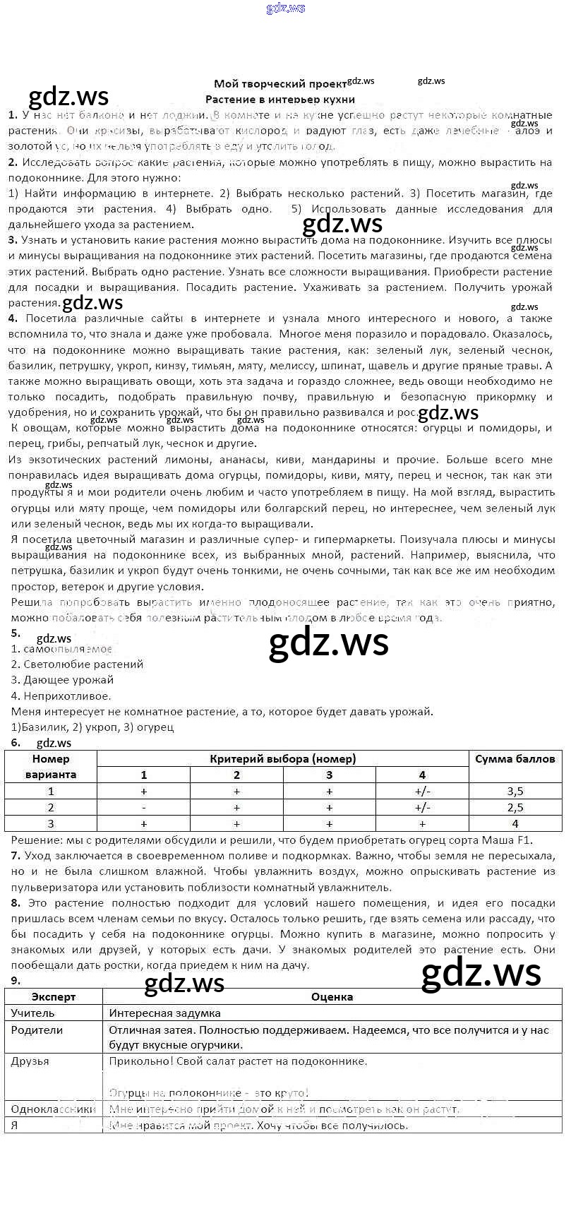 Готовый и полный ответ к Творческие проекты - Технологии 6 класс Синица Рабочая тетрадь Алгоритм успеха ФГОС